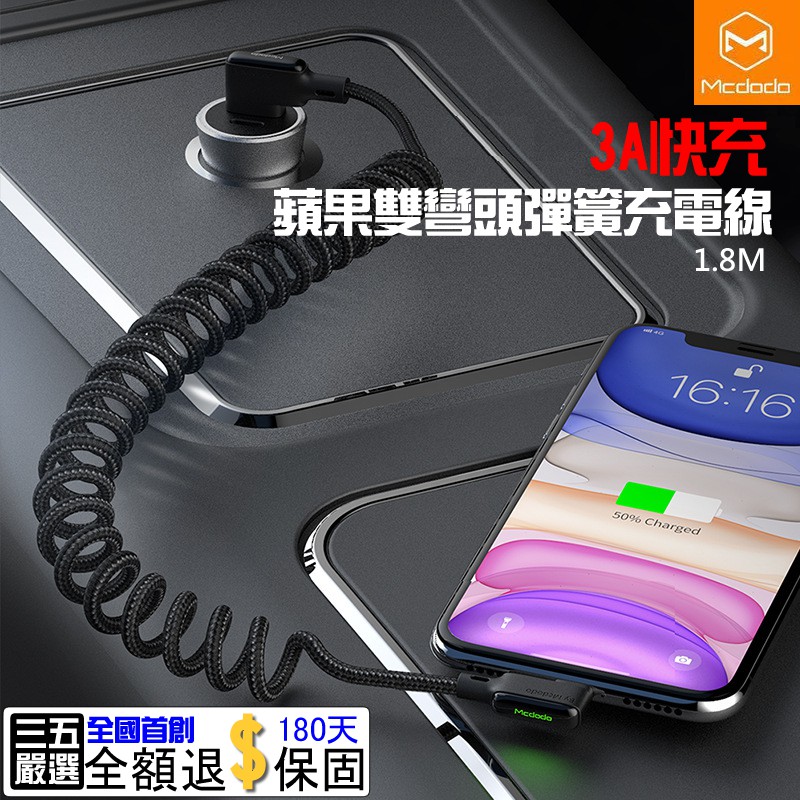 缺貨mcdodo 3a快充線iphone Type C 捲線雙彎頭彈簧線180cm 快速充電編織線車用充電線 露天拍賣